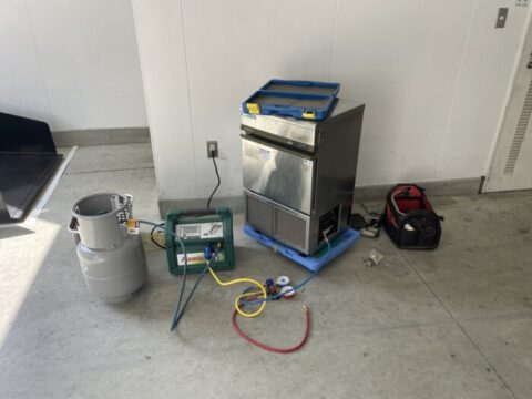 飯田市の現場です。製氷機廃棄の為に冷媒ガス回収破壊処理の依頼がありました。