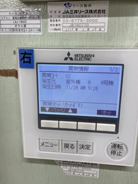 飯田市の現場です。異常停止するので見てほしいと依頼がありました。運転チェックするとガス圧が低い運転状態でした。ガスをチャージしてみました。運転良好になったのてまガス漏れしているようです。後日ガス漏れチェックします