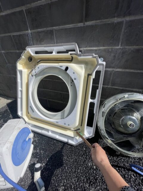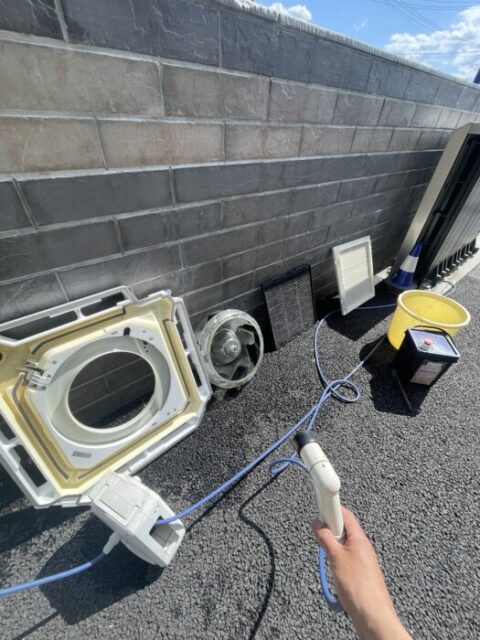 飯田市の現場です。空調機6台の洗浄クリーニングの依頼がありました。換気扇10台位のクリーニングもおこないました。